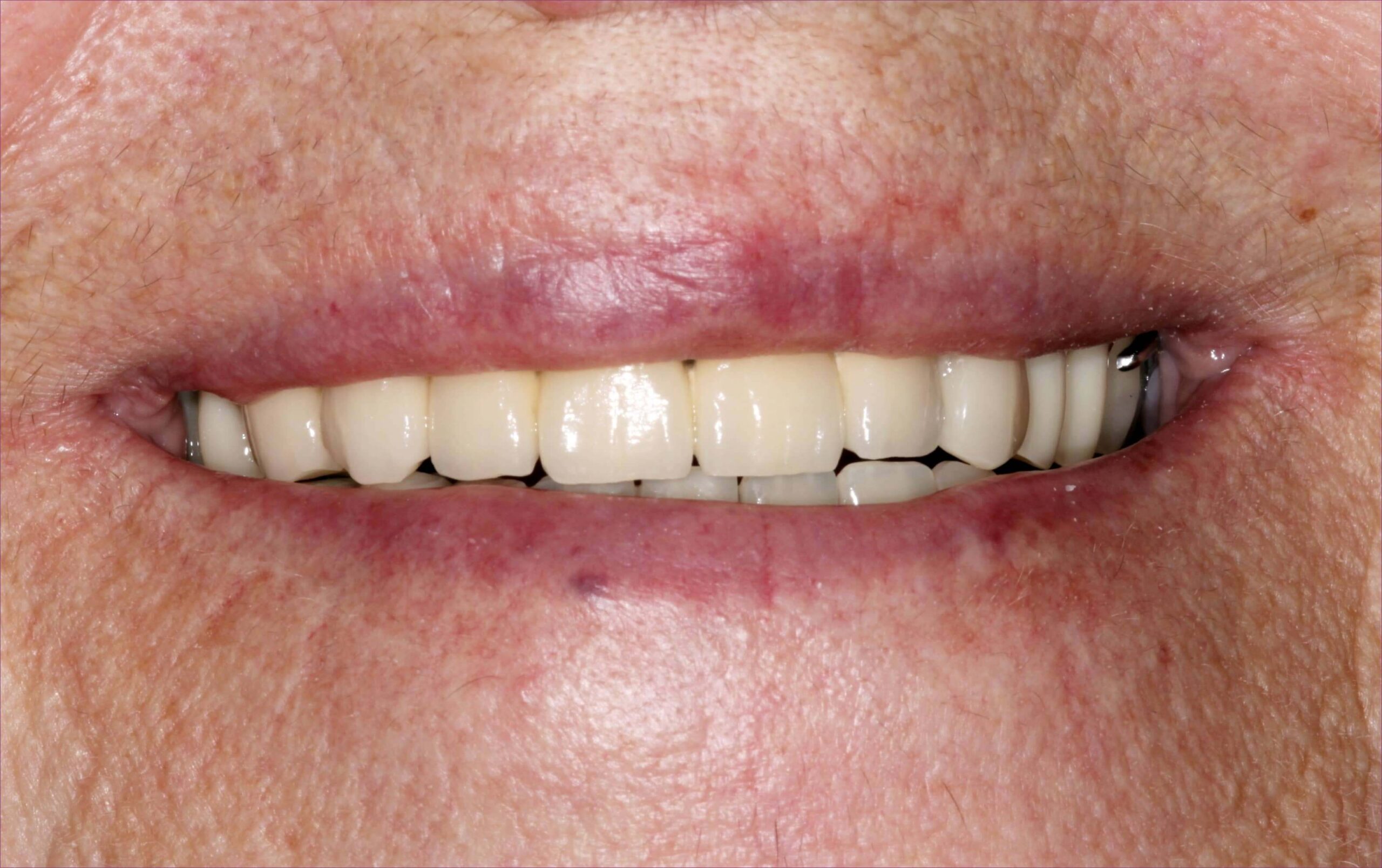 Végül a kezeléssorozat végén átadásra kerültek a fogpótlások. Az összkép a megérkezési állapottal összehasonlítva drámai változásokat mutat.