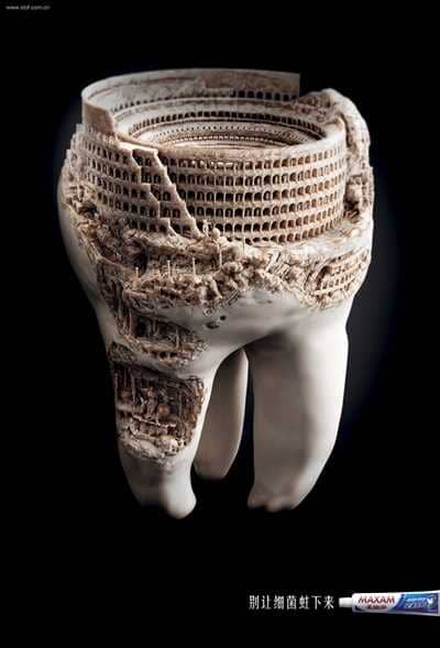 Bár ezen a reklámon kicsit el kell gondolkodni, mi igazán szellemesnek találjuk, hogy ebből az új szemszögből láttatják a fogápolás fontosságát.