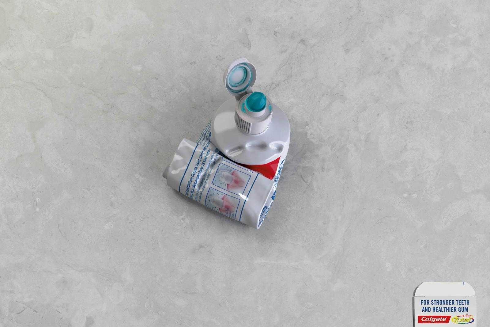 Elsőre talán nem is olyan egyértelmű, mit is akar hirdetni ez a fogkrém, hiszen zavarba ejtő módon a szem körüli ráncokat látjuk, maga a fogkrém szinte eltűnik a felületen. Ám aztán a doboz melletti felirat útba igazít: (kb.) Az életre szóló mosolyokért. Így máris érthető: a szép mosolyhoz kell a rendszeres fogmosás, így világossá válik a kapcsolat a ráncok és a fogkrém között.