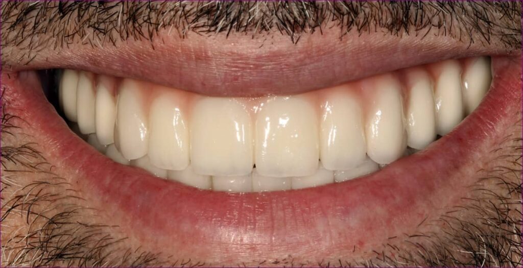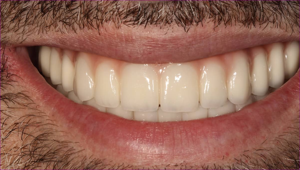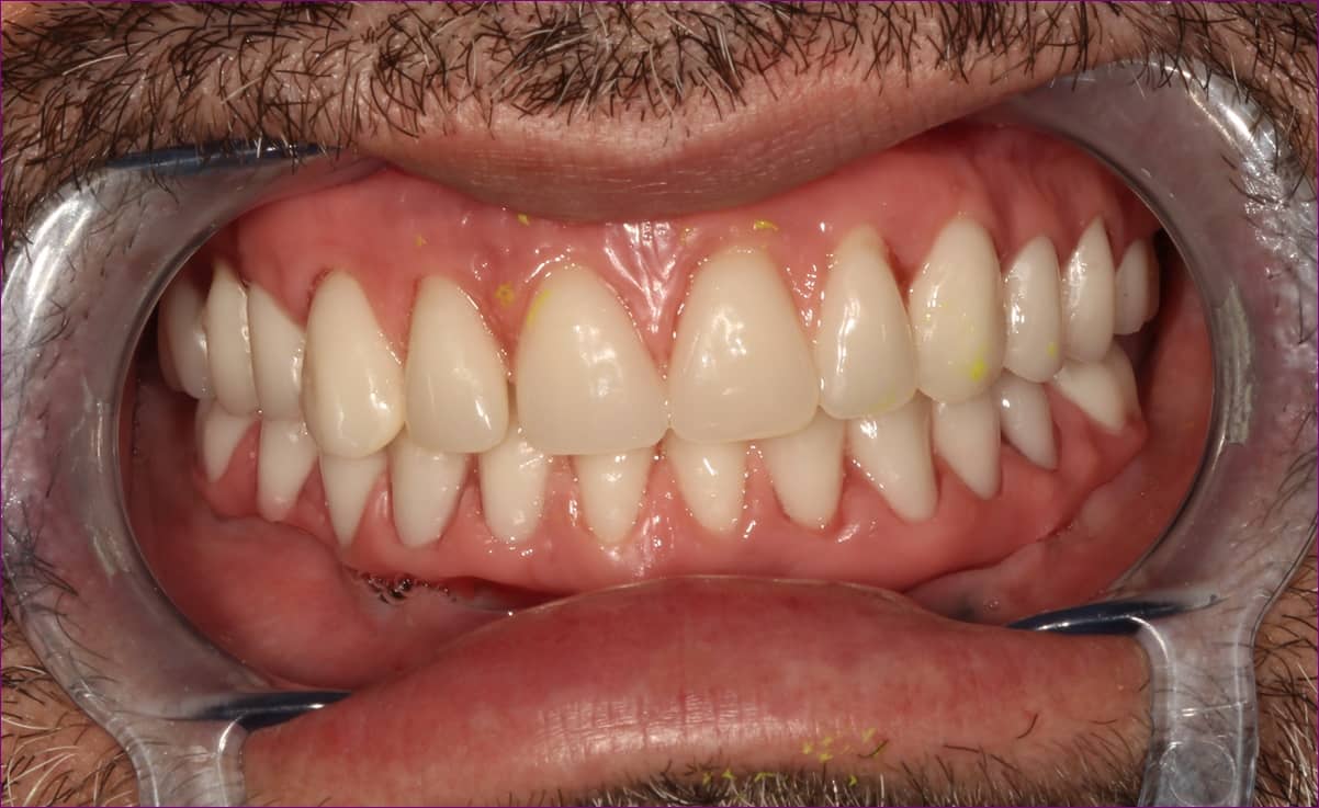 Férfipáciensünk magas esztétikai igényeit és kérését figyelembe véve mindkét állcsont esetében cirkóniumvázra készült porcelán leplezésű pótlást javasoltunk, csavarozható rögzítéssel. A csavarozás a páciensek számára komoly előnnyel jár, hiszen a pótlás bármikor eltávolítható, ezáltal a későbbiekben is könnyen javítható (például baleset vagy egyéb okból lepattant porcelán esetén). Másrészt az ehhez hasonló pótlásoknál nincs ragasztási munkafázis, mely a nehezen eltávolítható helyeken hosszú távon problémát okozhat.