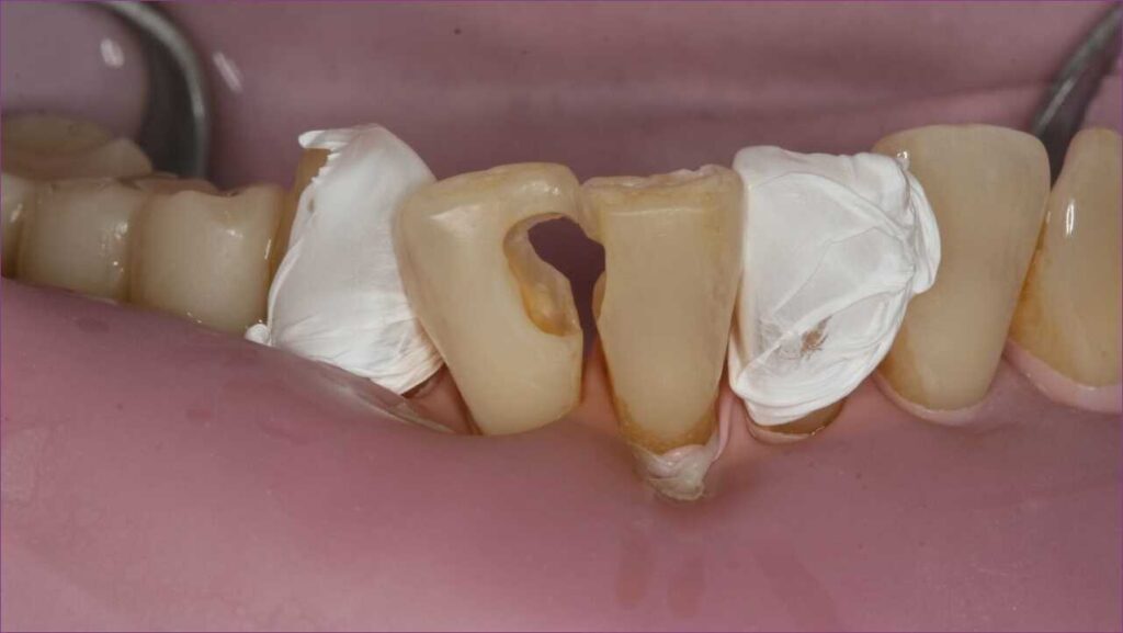 A metszőfogak szuvasodásának több oka is lehet, leggyakoribb a fogköztisztítás elhanyagolása, a fogmosás helytelen technikája, az összetorlódott fogak miatt nehezen tisztítható felületek. Páciensünk esetében mind a három tényező fennállt.