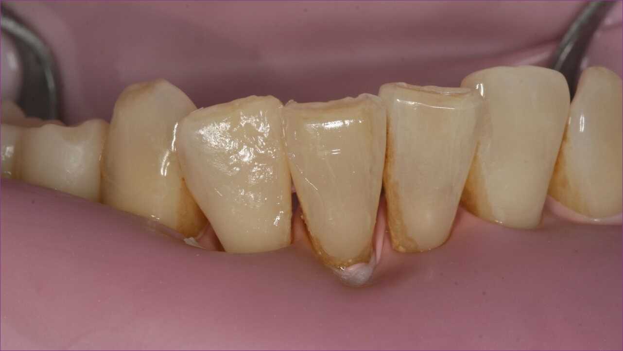 Páciensünk, egy kedves, mosolygós középkorú hölgy arra kért minket, hogy alsó frontfogain keletkezett fogszuvasodást orvosoljuk, mégpedig úgy, hogy a végeredmény ne legyen szembetűnő.