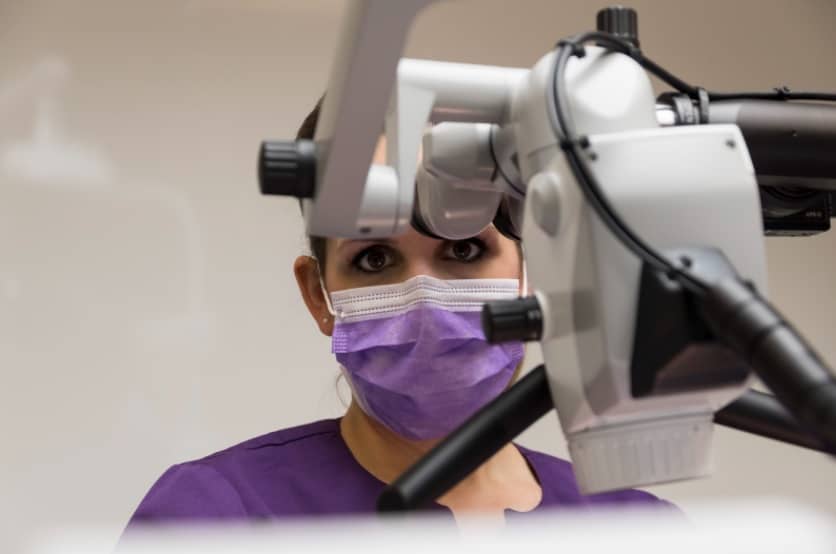 A mikroszkópos kezelés során egy nagyon drága és precíz eszköz segítségével nagy nagyításon (12,5x nagyítás) minden olyan apró részlet és rejtett gyökércsatorna láthatóvá és fellelhetővé válik, amelyet a mikroszkóp nélkül szinte lehetetlen lenne felfedezni.