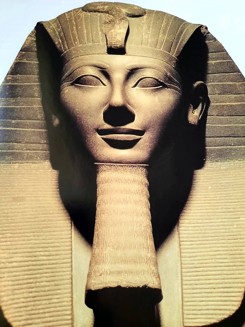 A fáraókat isteni származásuknak megfelelően szinte mindig idealizáltan ábrázolták. Nem lett volna méltó hozzájuk egy kancsal szem vagy egy aránytalanul nagy, előredőlő fogsor. A szabályos vonások mellett a fenséges mosoly is azt a cél szolgálta, hogy emelje isteni fényüket.