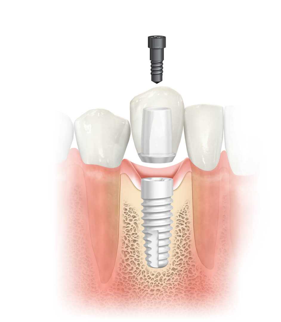 A fogászati implantáció során a csontállományba műgyökeret ültetnünk be, amelynek segítségével egy vagy akár az összes fog hiányát pótolhatjuk.