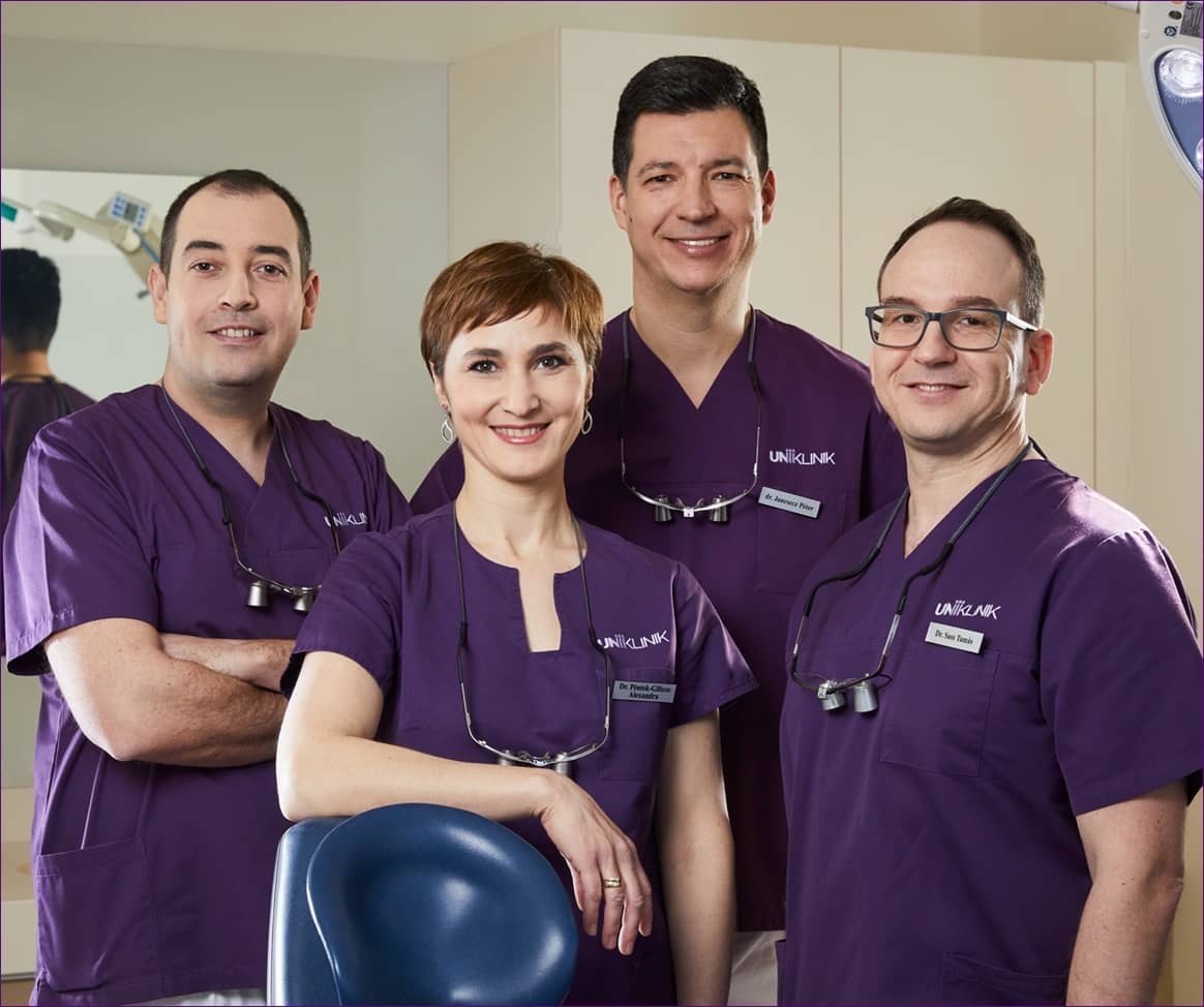 Tapasztalt szájsebészeink – képünkön balról jobbra: dr. Záhonyi Balázs, dr. Gilicze Alexandra, dr. Jancsecz Péter és dr. dr. Sass Tamás – a kórházi aneszteziológus és aneszteziológusasszisztens kollégákkal együttműködve azon dolgoznak, hogy Ön a lehető legjobb ellátást kapja.