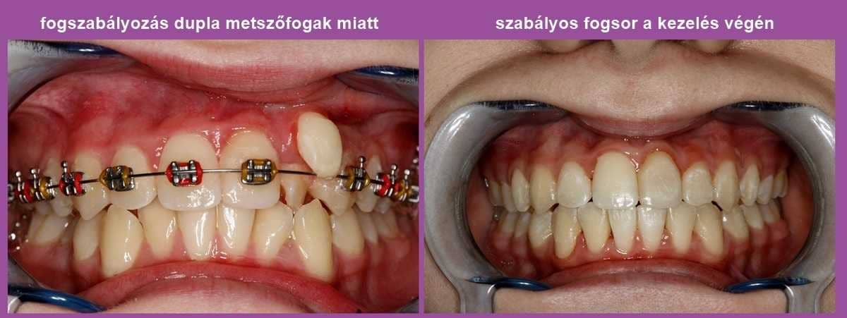 Fogágybetegségben szenvedő pácienseinknél bizonyos esetekben a fogak stabilizálására fogszabályozást alkalmazunk. Esettanulmányaink között találhat példát erre is.
