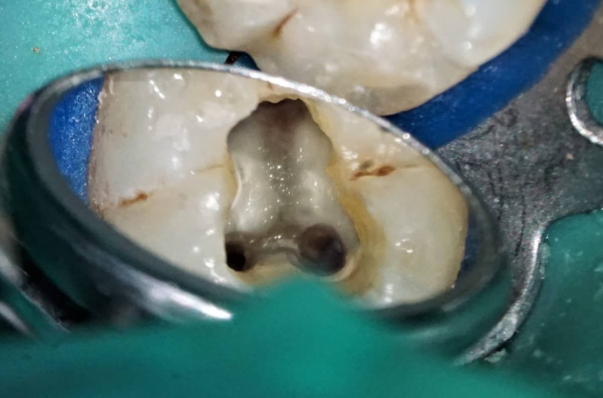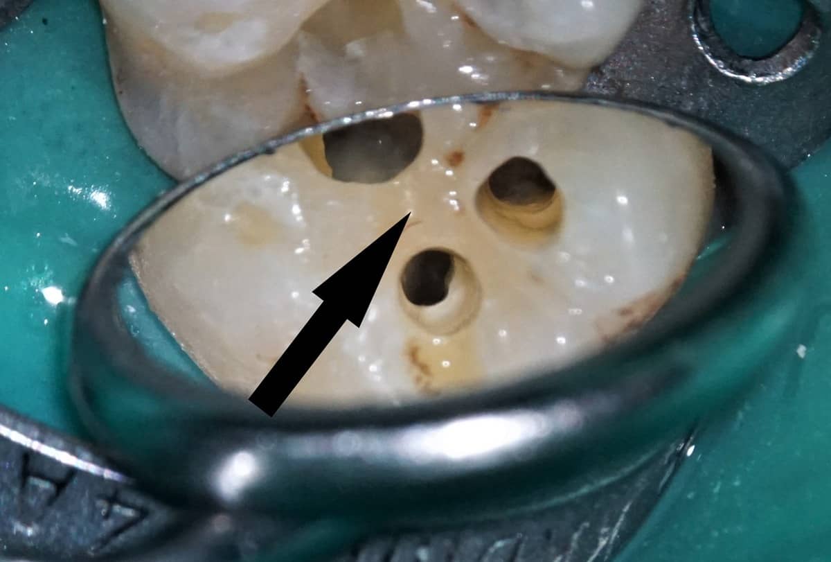 Még ilyen kicsi lyukakon keresztül is képesek vagyunk tökéletesen kitisztítani a fogak gyökércsatorna-rendszerét, majd ezt követően elkészíteni a gyökértömést!