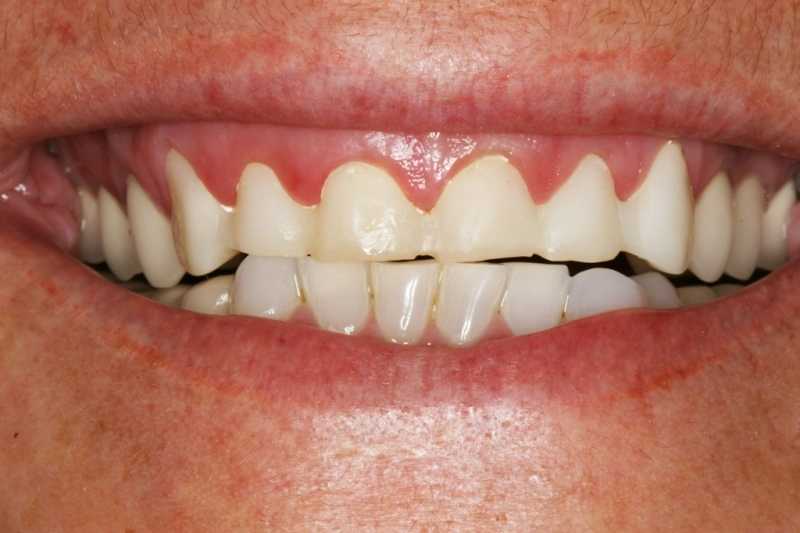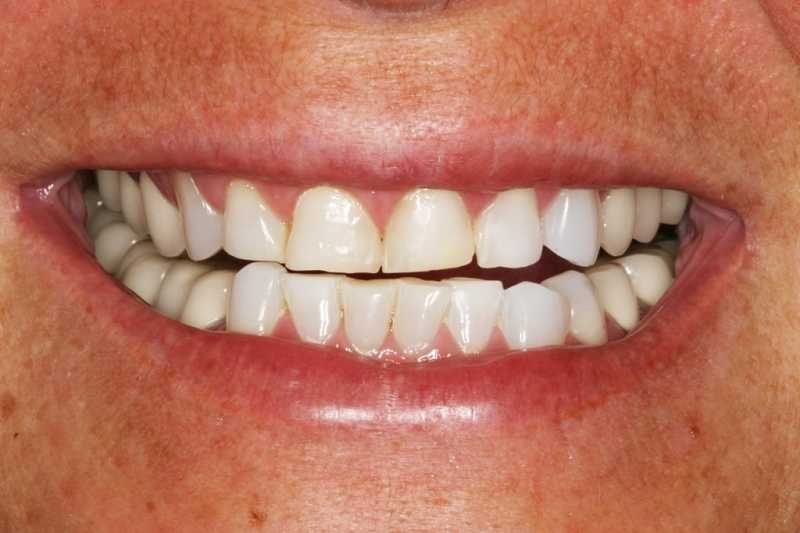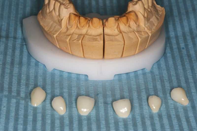 Igényes nőpáciensünk felső frontfogaiban a sok tömés, kopás esztétikai problémákat okozott. Azzal a határozott szándékkal kereste fel klinikánkat, hogy mi majd szebbé varázsoljuk mosolyát. Az esztétikai problémát különálló cirkonkoronákkal oldottuk meg.