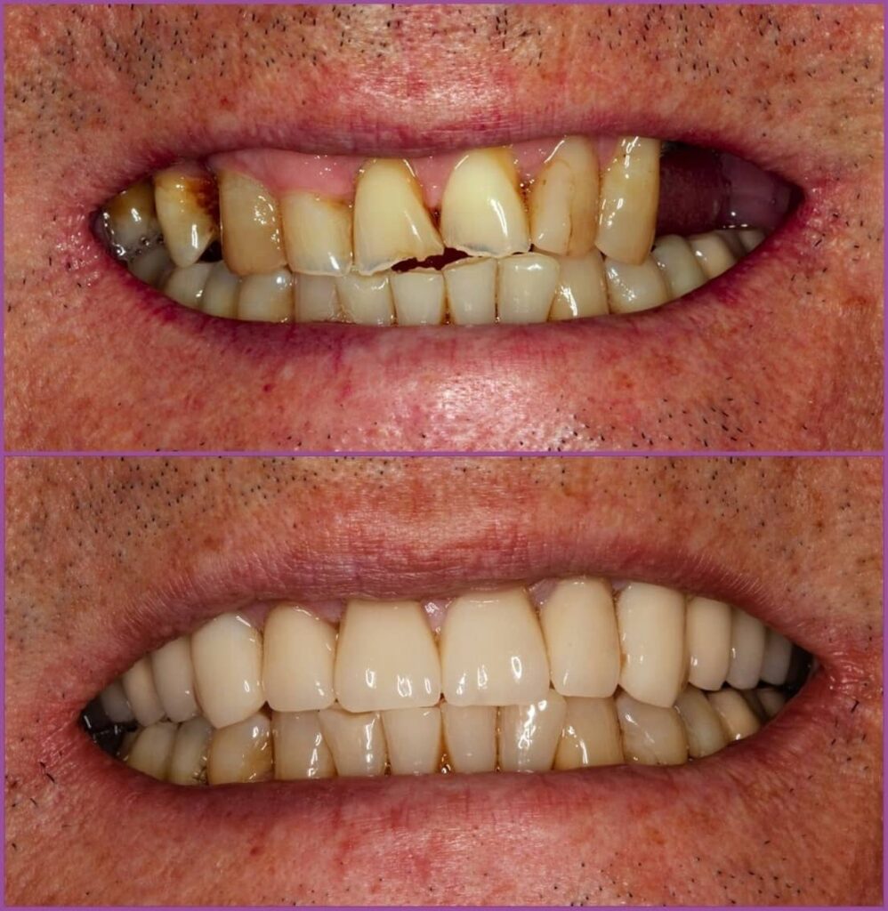 Páciensünk pár hét alatt gyönyörű új mosolyt kapott, amelyhez néhány lenyomatra és számos próbára volt szükség, hogy pont olyan legyen, ahogy ő elképzelte. Az eredmény esztétikus fogsor és fiatalosabb, magabiztosabb megjelenés.