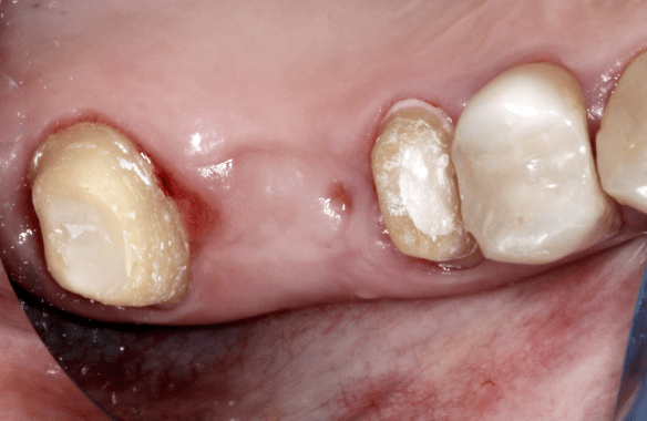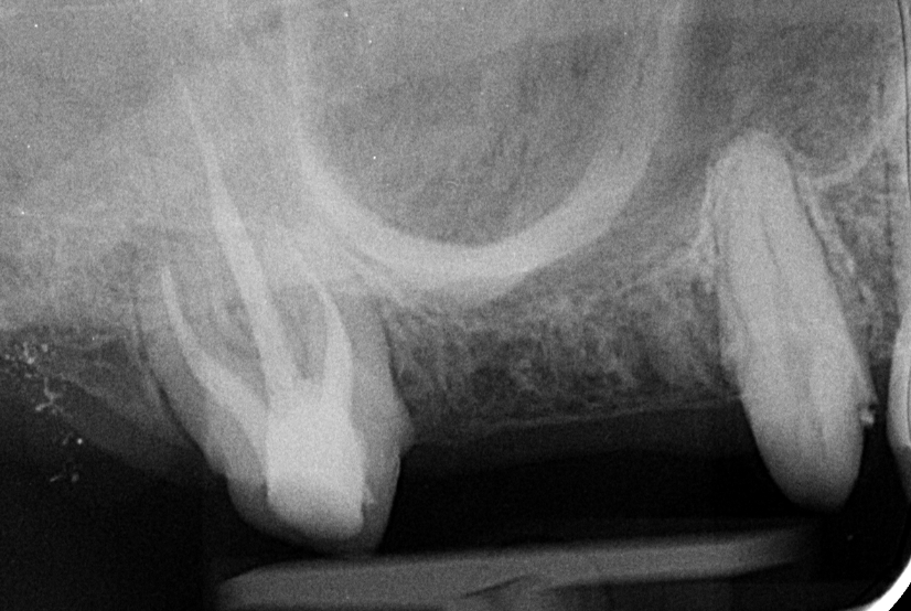 Bár a pótláshoz megoldásképpen akár az implantáció is szóba jöhetett volna, a vizsgálatokból és a röntgenfelvételekből az derült ki, hogy az implantátum behelyezéséhez az alacsonyan elhelyezkedő arcüreg miatt csontpótlásra (sinus-liftre) is szükség lett volna. Ezt megfontolván a páciens inkább a hídpótlás mellett döntött.