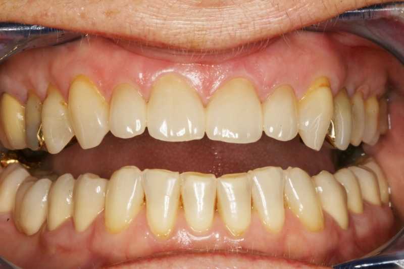 40-es éveiben járó nőpáciensünk a régi tömött, elszíneződött, érzékeny fogai által okozott problémákra szeretett volna végleges megoldást találni. Klinikánk fémmentes kerámiakoronákkal és -hidakkal varázsolta újjá páciensünk mosolyát!