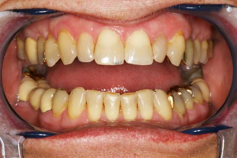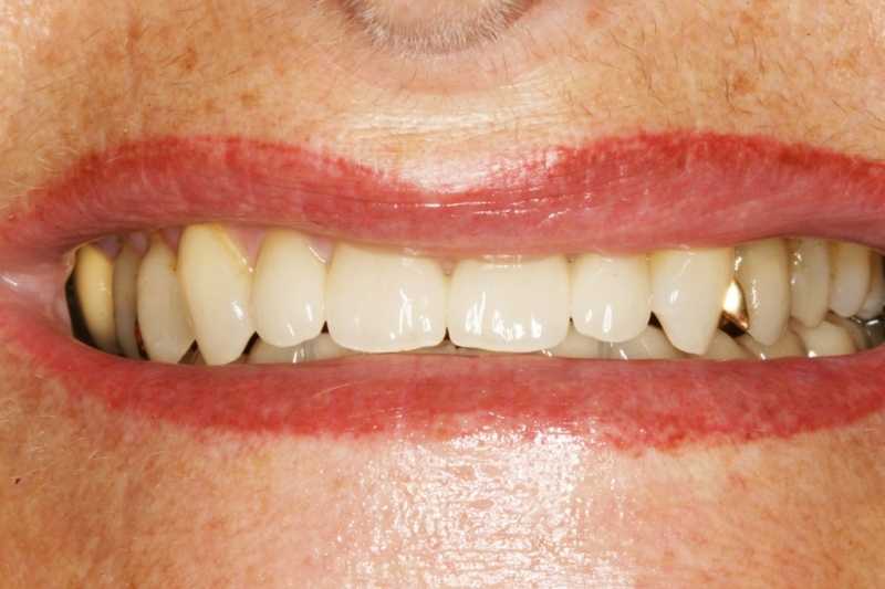 40-es éveiben járó nőpáciensünk a régi tömött, elszíneződött, érzékeny fogai által okozott problémákra szeretett volna végleges megoldást találni. Klinikánk fémmentes kerámiakoronákkal és -hidakkal varázsolta újjá páciensünk mosolyát!
