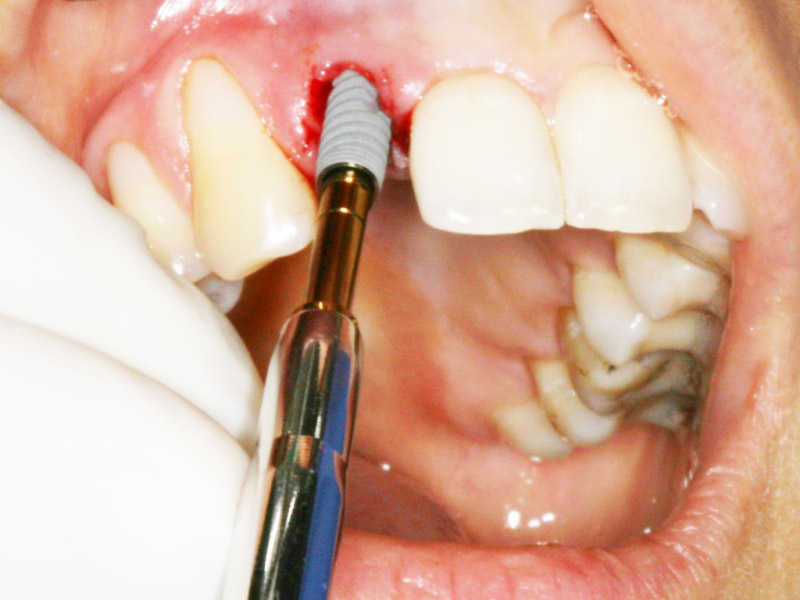 A fogeltávolítást követően azonnali implantáció történt. A Nobel Biocare implantátumcsaládba tartozó Nobel Active implantátum került beültetésre.