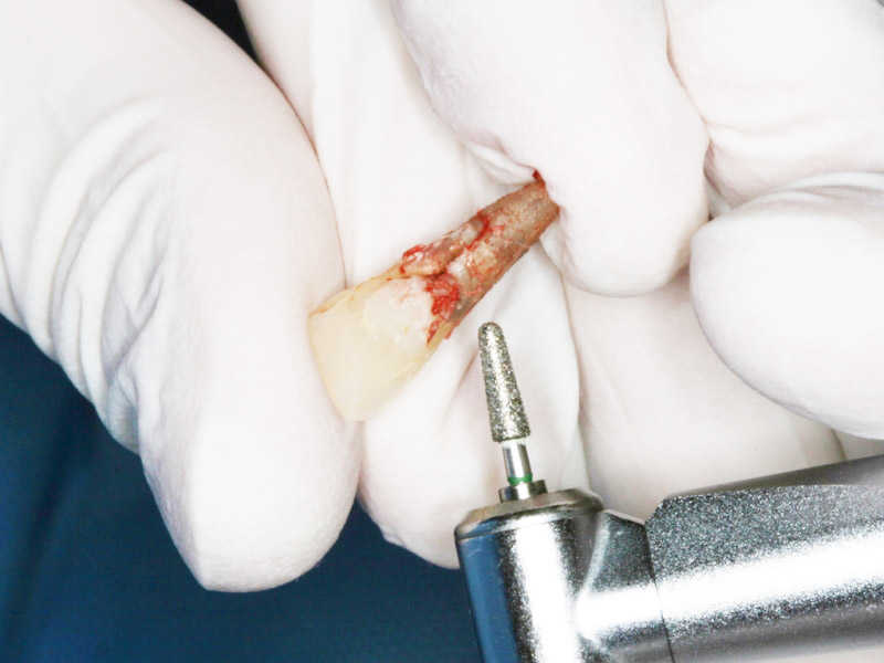 Az implantátum behelyezését követően az eltávolított fog koronarészének segítségével alakítottuk ki az ideiglenes koronát.