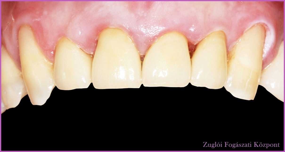 A páciens a frontfogak esztétikájával volt elégedetlen – méghozzá joggal. Kezelőorvosa, Dr. Balogh Brigitta az elszíneződött, hiányos nyaki tömések cseréjét javasolta, valamint a régi fémmentes koronák cseréjét fémmentes Procera cirkónium-dioxid koronákra.