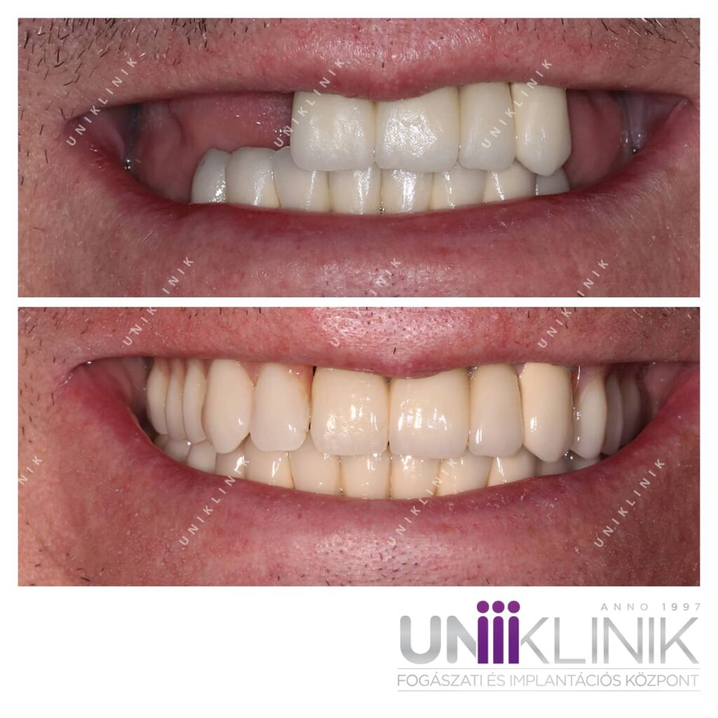 Mindkét állcsonton kiterjedt foghiányt találtunk, melyek a rágást is ellehetetlenítették és az esztétikai megjelenést is nagyon hátrányosan érintették.