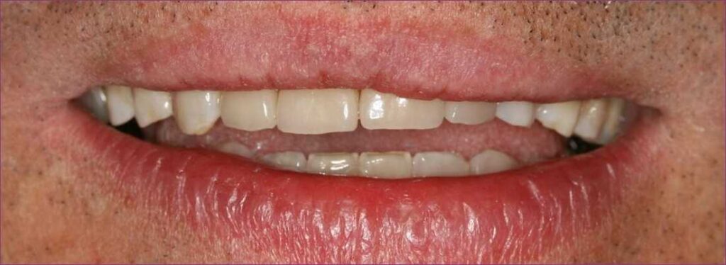 Fiatal férfipáciensünk metszőfogai a saverózió miatt csúnyán erodálódtak.