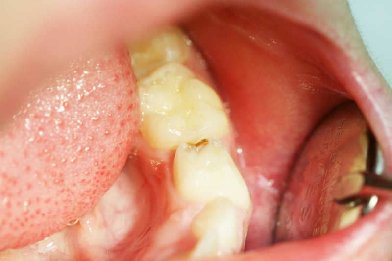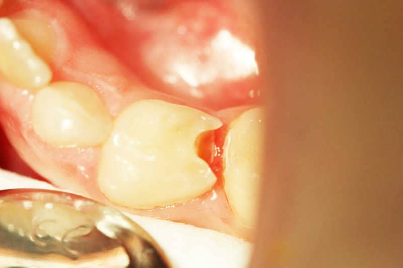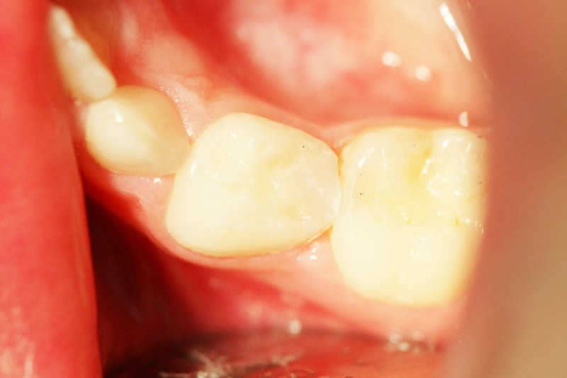 A bal alsó tejfog distalis és rágófelszíni szuvasodása