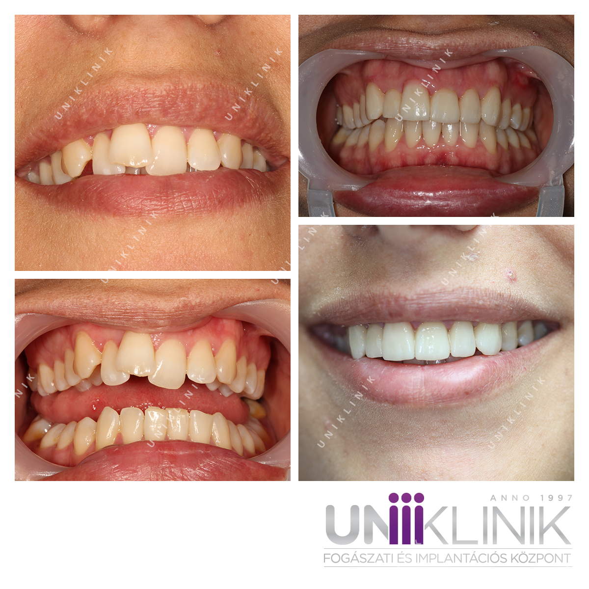 A páciens a felső állcsont frontfogainak esztétikáján szeretett volna javítani, torlódott fogait szerette volna rendezettebbé, szabályosabbá tenni, hosszadalmasabb fogszabályozó kezelés nélkül.