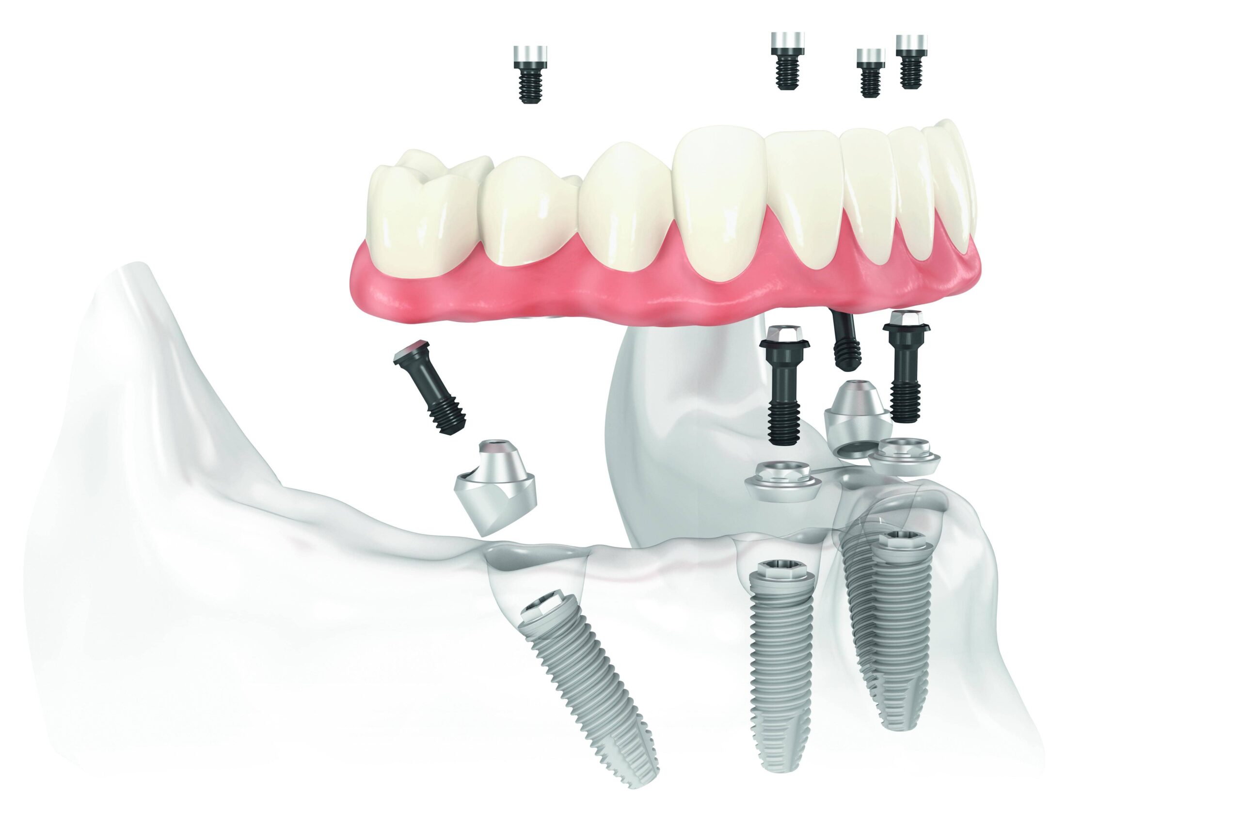 Az All-on-4 vagy All-on-6 technológia azonnali és fix megoldást nyújt teljes foghiány esetében. Ezzel az innovatív fogászati megoldással 4 vagy 6 db fogimplantátum kerül speciális szögben beültetésre az állcsontba, melyek akár azonnali terheléssel kapják meg a csavarozható teljes hídprotézist.