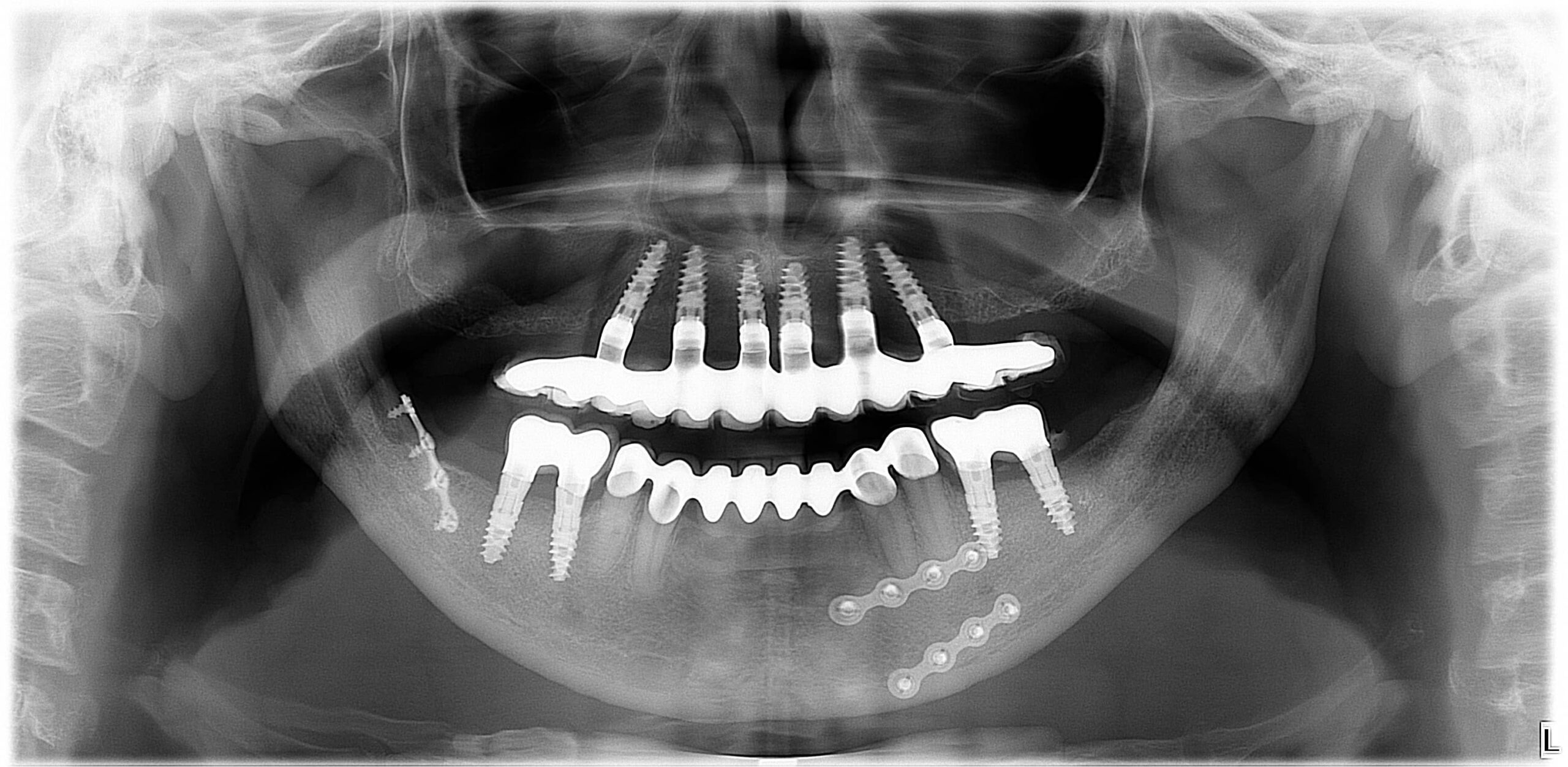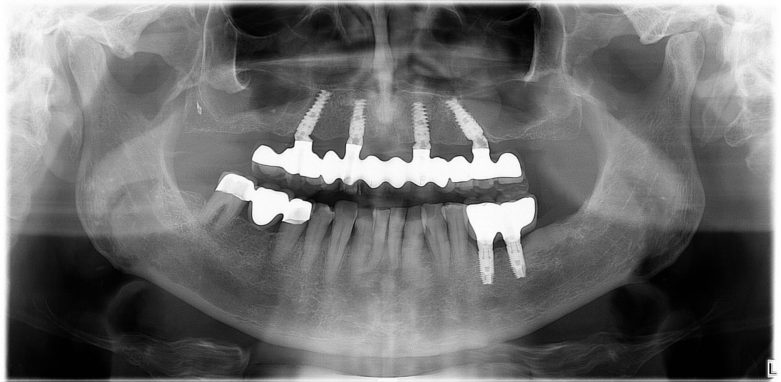 Teljes, fix fogpótlás 4 db fogászati implantátummal, állcsontonként