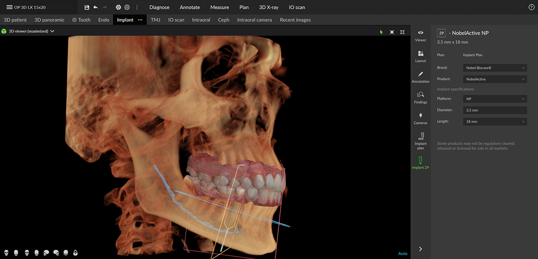 Legyen szó szóló implantátum behelyezéséről vagy All-on-4 technológia alkalmazásáról, a DEXIS OP 3D LX lehetővé teszi a többdimenziós képalkotást a műtét előtti diagnózis felállításához valamint a lehető legprecízebb implantátumbeültetés támogatásához.