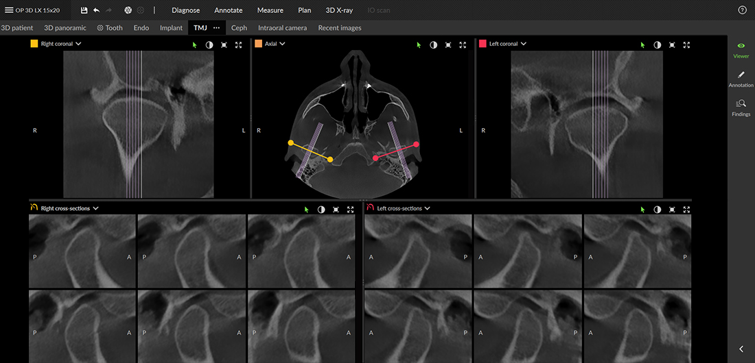 A temporomandibuláris ízület bilaterális vizualizációjára, a keményszövet degeneratív elváltozásainak felmérésére és az okklúzió pozicionálására is alkalmas, melyek mind támogatják a gnatológiai, azaz állkapocsízületi diagnózist és kezelést.