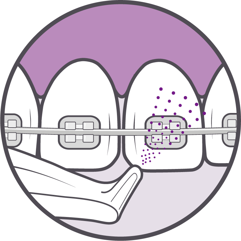 FOGSZABÁLYOZÓ KÉSZÜLÉK: a készülék fogakra rögzített tappancsok (az ún. bracketek) szintén kihívást jelentenek. Evés közben ételmaradékok szorulhatnak a bracketek köré, illetve az étkezések után képződő lepedék is rátapad. Mivel a lepedék is biofilmet, vagyis baktériumokat tartalmaz, a készülék tisztán tartása különösen fontos. A fogak felszínén elinduló szuvasodás csúnya, látható nyomokat hagyhat a fogakon. Éppen ezért fogszabályozásnál kifejezetten ajánlott az irányított biofilm-terápia elvégzése, ha kell, több alkalommal is.