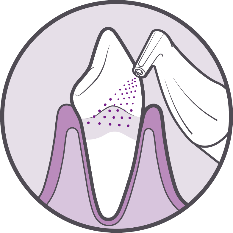 • Ezzel a technológiával több mm mélyen is kitisztíthatóak az íny melletti tasakok. Ezek a felszínek valójában baktériumokkal, ételmaradékkal és egyéb anyagokkal teli tasakok, amelyek idővel komoly problémákat (pl. fogyágybetegség kialakulása) okozhatnak.