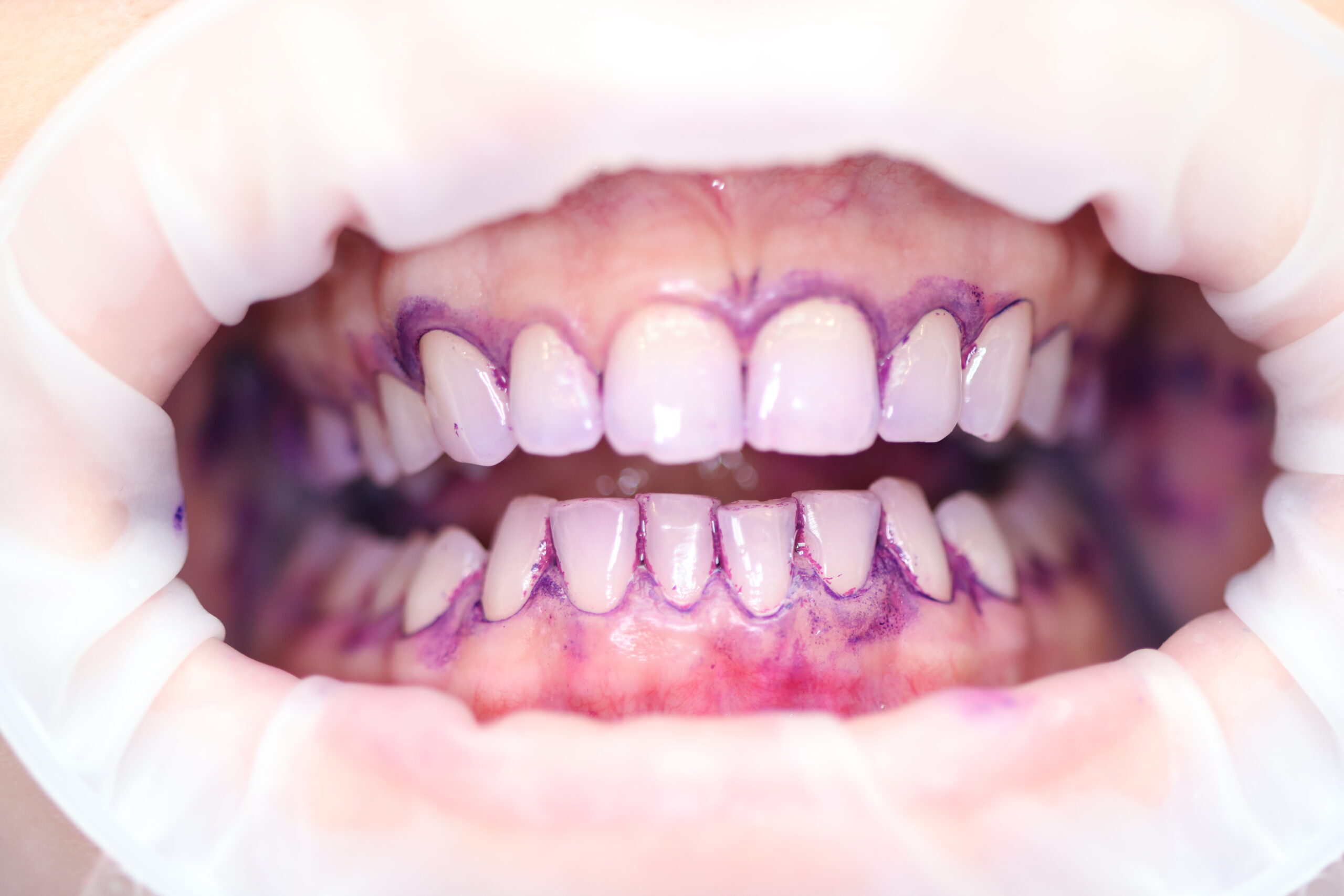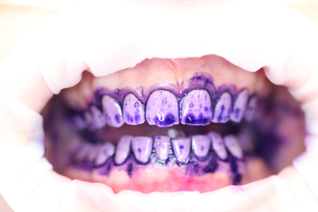 • A terápia részeként alkalmazott plakkfestés megmutatja a fogakon megtapadó biofilmet, fogkövet, ezért a beavatkozás minimál invazív. Ez azt jelenti, hogy nincs felesleges beavatkozás, csak azokon a részeken végezzük el a tisztítást, ahol szükség van rá.